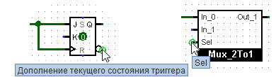 Если контакты на чертеже подсхемы имеют метки, связанные с ними, то Logisim будет показывать эти метки в подсказке (то есть во временном текстовом поле), когда пользователь наведёт мышь на соответствующее место компонента подсхемы. Если вы находите эти подсказки раздражающими, вы можете отключить их через вкладку Чертёж окна Настройки.